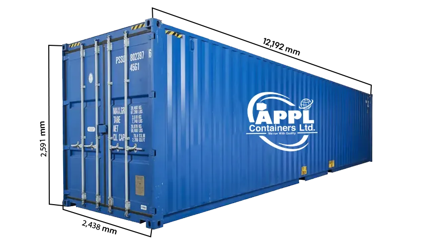 The 40 feet GP or ISO container proves to be an extremely cost-effective way to transport a variety of goods from one place to another. In this case, the 40 feet signifies the overall length of the container, and its width and height are 8 & 8.6 feet, respectively. The maximum gross weight of the container is 32500 kilograms, and the maximum payload is 28800 kilograms.
